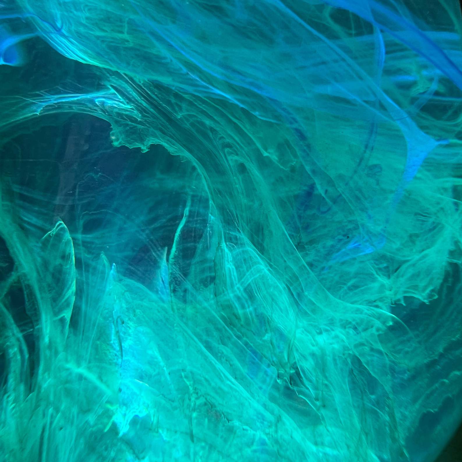This piece looks like the shallow water on a distant planet. It shows the way light moves through deep water and thick air. It feels very peaceful and a bit mysterious.